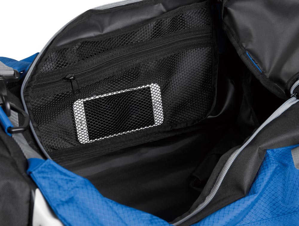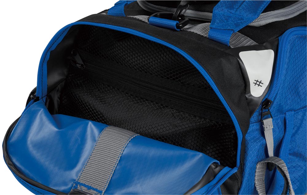 両サイドでバット収納が可能。キー、小銭ポケット有り。センタースペースは十分な収納力を持ち、
