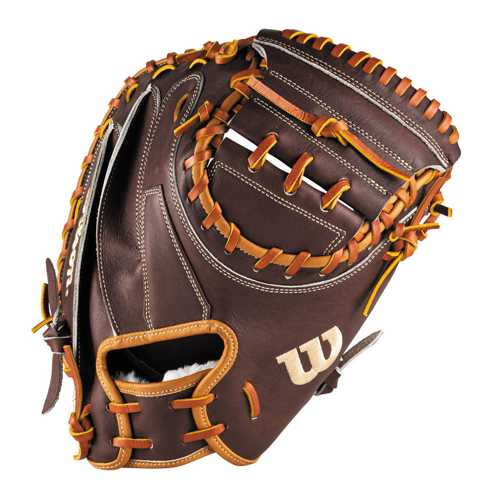 スーパースキン:牛革の約1/2の軽さで約2倍の耐久性を持つWilson独自の素材。雨(水分)、汚れが浸透しないため重くなりにくい。