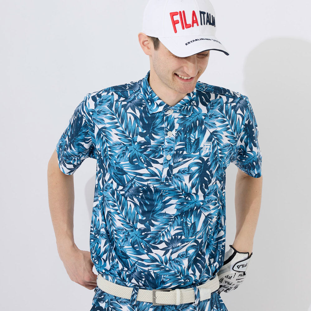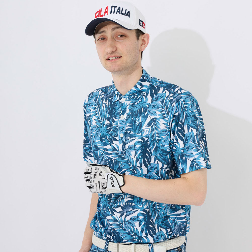 メンズ フリージングスキン ボタニカルプリント ホリゾンタルカラーポロシャツ ゴルフウェア