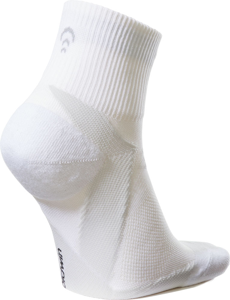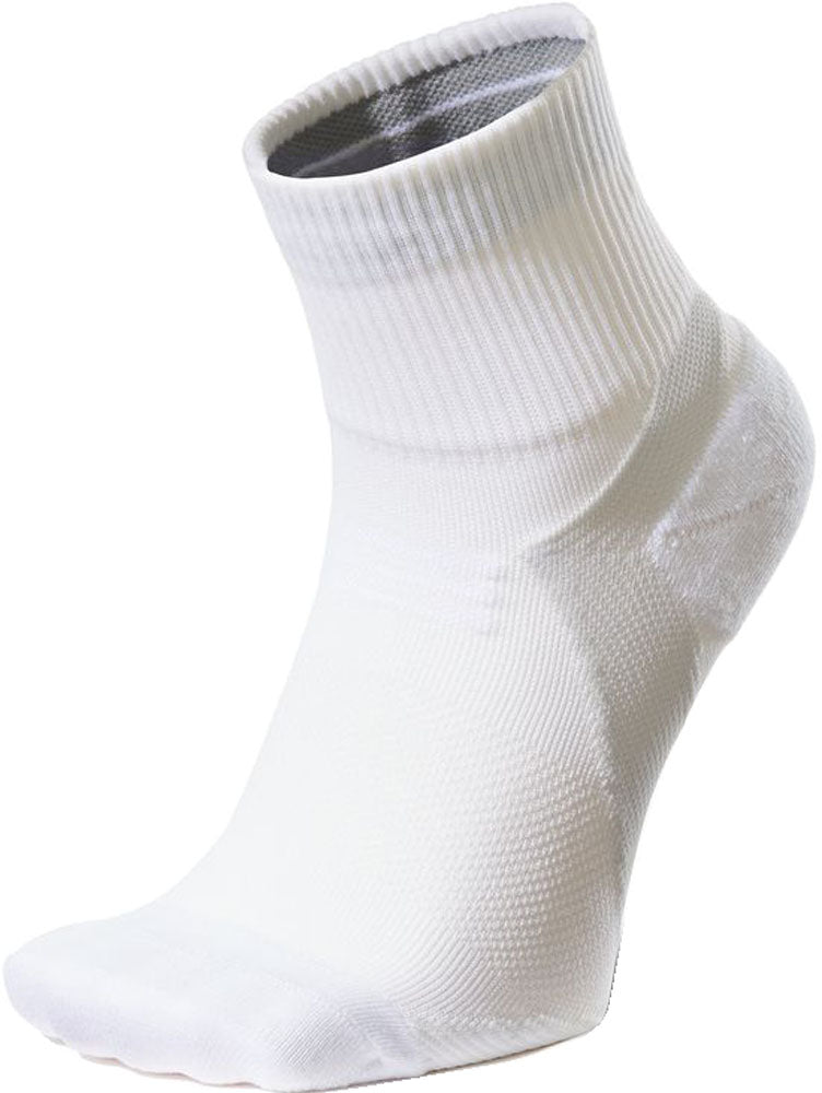 足裏にある3つのアーチをサポートするテーピング構造を持ったソックス。足裏の内側縦アーチ、外側縦アーチ、横アーチをサポートして、足にまつわるトラブルの原因となりやすいアーチの崩れを軽減。アーチを支えることで、着地時に脚にかかる衝撃を吸収するだけでなく、足裏アーチがバネの役割を果たして推進力をもたらします。ソックス内側のつま先とかかと部分は、クッション性の高いパイル構造に。つま先は、強度の高い糸に切り替えて補強しています。くるぶしがしっかり隠れるクォーター丈。環境への負荷に配慮してリサイクル素材を使用していま