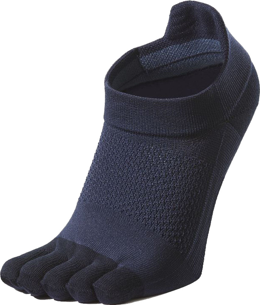 5本指タイプのアーチサポートソックス。足裏にある縦のアーチ(土踏まず部分)の編み組織を変えて、サポート力を向上。アーチを支えて崩れを抑えることで、脚にかかる衝撃を吸収します。つま先は、強度の高い糸に切り替えて補強。5本指タイプは、それぞれの指が自由に動き、足の指をしっかりと使って踏ん張ることが可能。土踏まずの適度なサポート力と、足指のドライ感や動きの自由度を求める方におすすめの1足です。環境への負荷に配慮してリサイクル素材を使用しています。