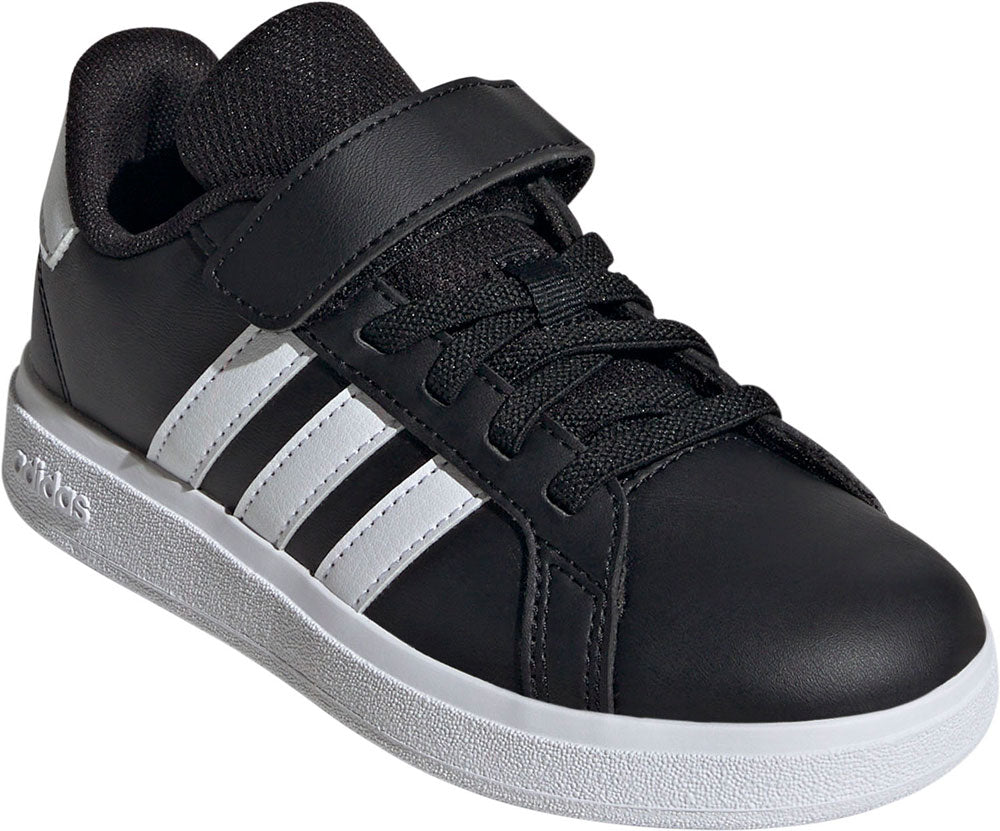 子どもが自転車を乗り回したり、友達の家に行ったりするときに履かせてあげたい、動きやすくてクラシックなデザインのキッズ用スニーカー。フェイクレザーアッパーにソフトな感触のライニングを付け、アイコニックなスリーストライプスをサイドにあしらい、元気いっぱいのキッズの足に必要なグリップ力を提供する、屈曲性に優れたラバーカップソールを合わせている。
