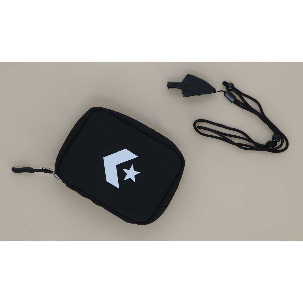 撥水機能のあるポリエステル素材を使用したホイッスルケース。ホイッスルを3つ収納できます。また内部のメッシュ部分にはレフリーワッペンを入れられます。コスパにも優れています。