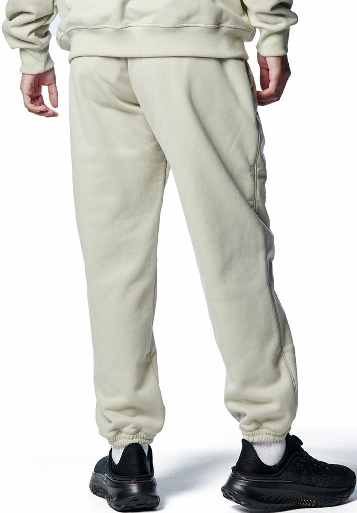 ウエストはドローコードにより調整可能。両サイドにポケット。右側に小物を安全に収納できるファスナー付きストレングスポケット。撥水機能を備えた10ozの起毛フリース。100%ポリエステルには思えない柔らかさ、ウェイトを備えたフリース素材が熱を逃がさず、保温性と快適さをキープ。表は微起毛、裏はやや毛足の長い起毛が、上質な質感、快適な肌触りを提供。ややオーバーサイズのシルエットがリラックス感を演出。