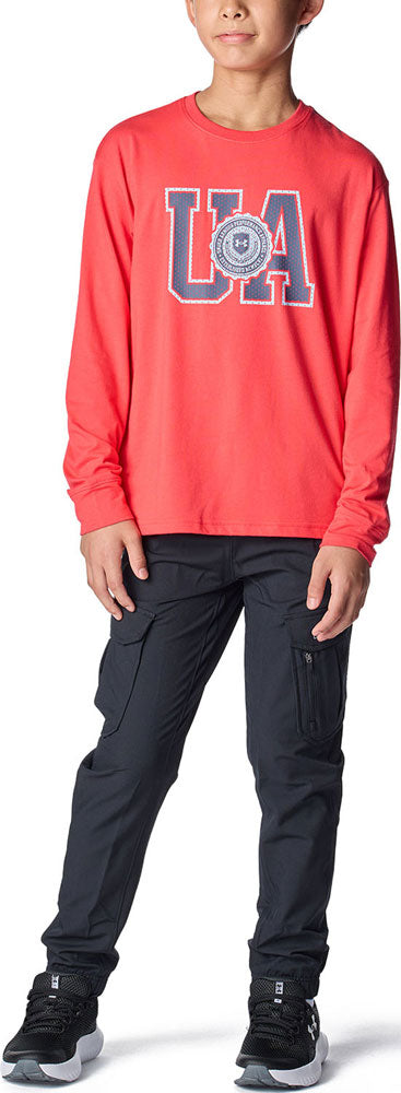 UAパフォーマンスコットン バーシティ ロゴ ロングスリーブ Tシャツ ジュニア キッズ