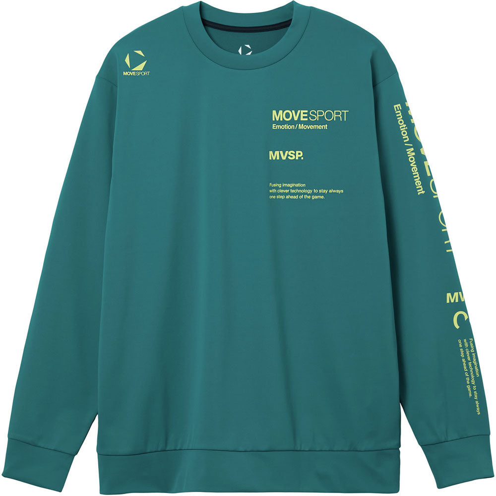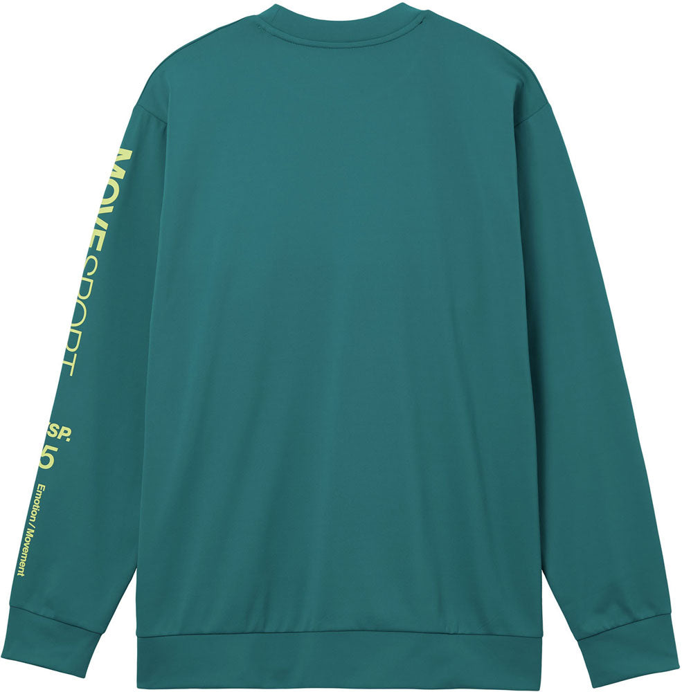 左胸と左袖にブランドロゴグラフィックをプリントした長袖シャツ。ウェアから受けるストレスを軽減した素材【S.F.TECH/エス.エフ.テック】を採用。表裏異なる生地組織によってウエア内のムレを軽減。