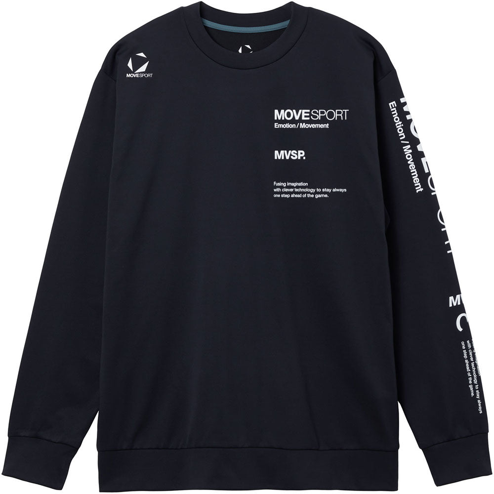 左胸と左袖にブランドロゴグラフィックをプリントした長袖シャツ。ウェアから受けるストレスを軽減した素材【S.F.TECH/エス.エフ.テック】を採用。表裏異なる生地組織によってウエア内のムレを軽減。