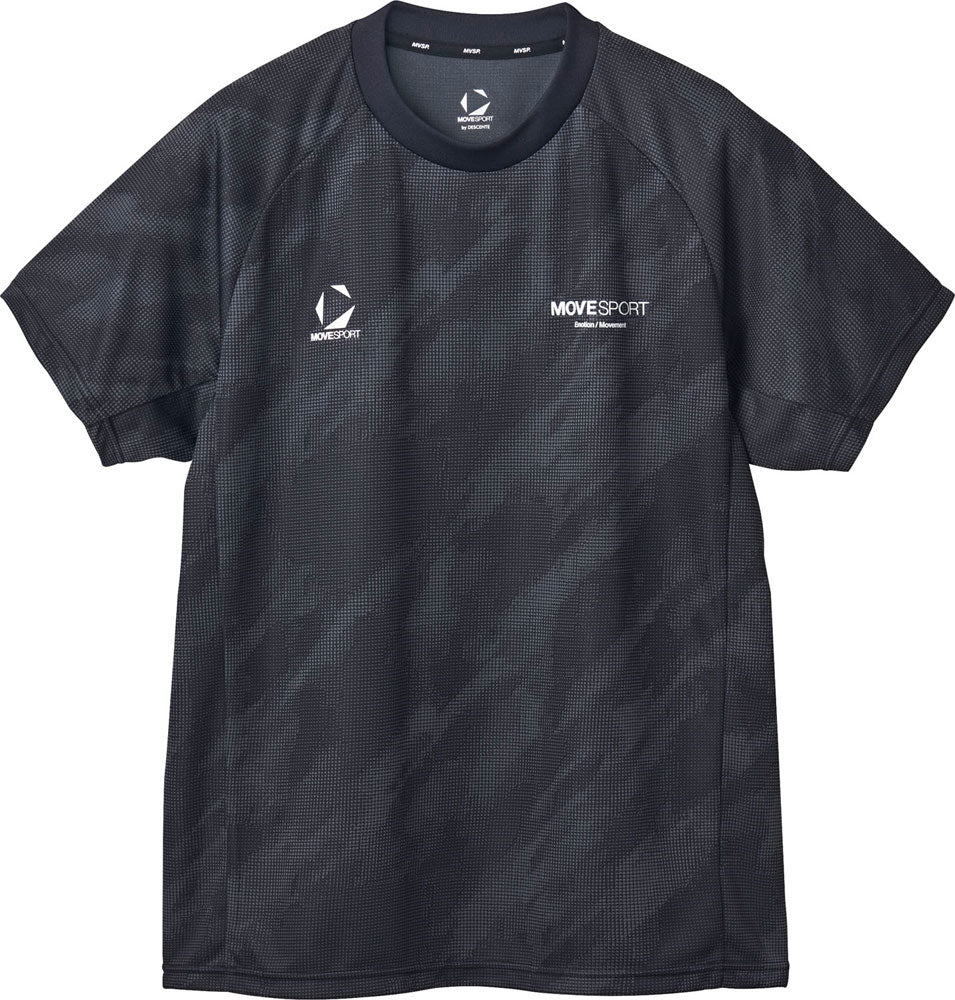 生地の編み組織で柄を表現したジャガード半袖シャツ(ラグランスリーブタイプ)。「風」と「躍動感」 をモチーフにした総柄が春夏らしい爽やかさと軽快さを演出。吸汗性に優れ、肌側の汗を表側に素早く拡散。適度な柔らかさと伸縮性を兼ね備え、身体の動きを妨げず快適な着心地です。