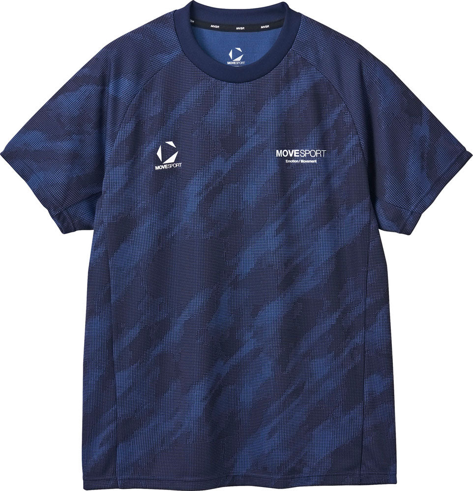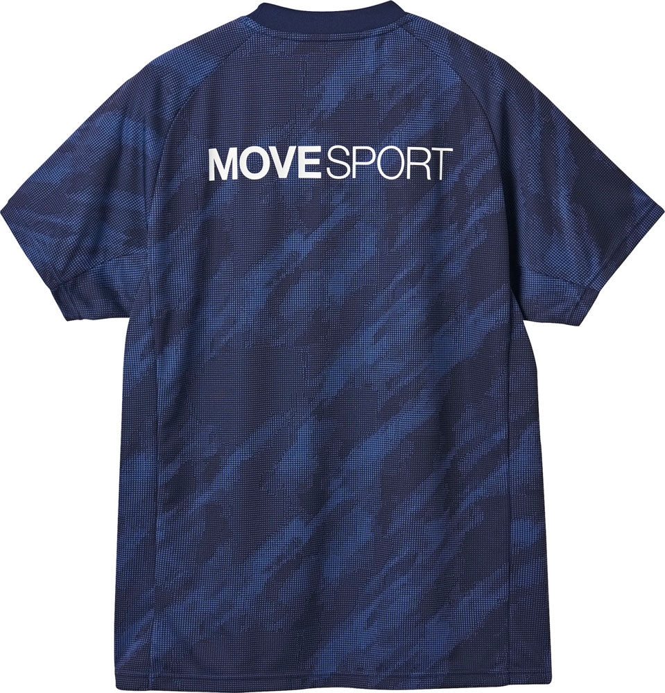 生地の編み組織で柄を表現したジャガード半袖シャツ(ラグランスリーブタイプ)。「風」と「躍動感」 をモチーフにした総柄が春夏らしい爽やかさと軽快さを演出。吸汗性に優れ、肌側の汗を表側に素早く拡散。適度な柔らかさと伸縮性を兼ね備え、身体の動きを妨げず快適な着心地です。