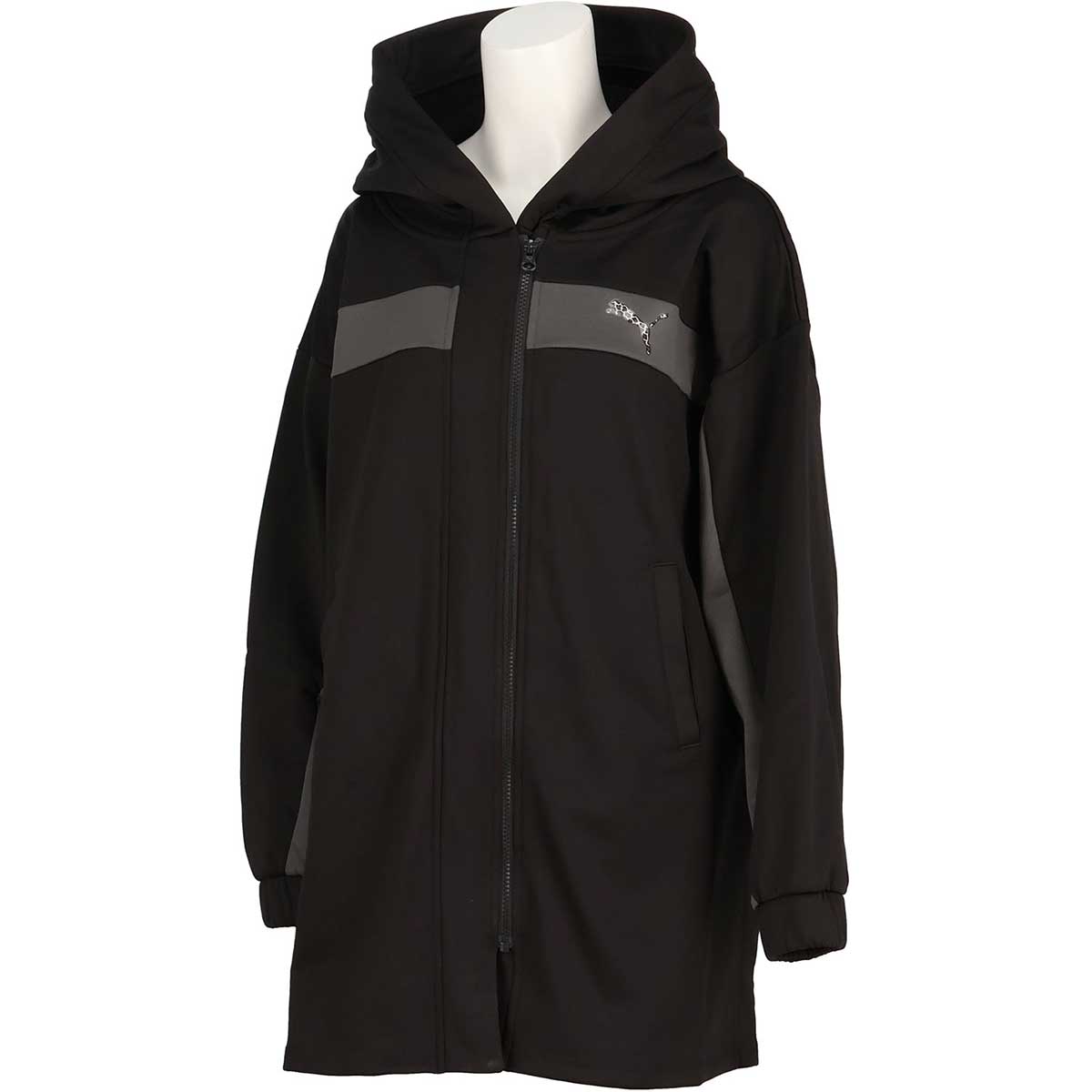 PUMA独自の吸汗速乾性に優れたDRYCELLを搭載した裏起毛のフリース素材を仕様。お尻まで隠れる長めの丈感、ゆったりとしたシルエット、タイツやショーツといったトレーニングアイテムとの相性抜群のフリースとなります。ゆったりとしたビックシルエットのフードが顔回りをすっきり見せてくれます。