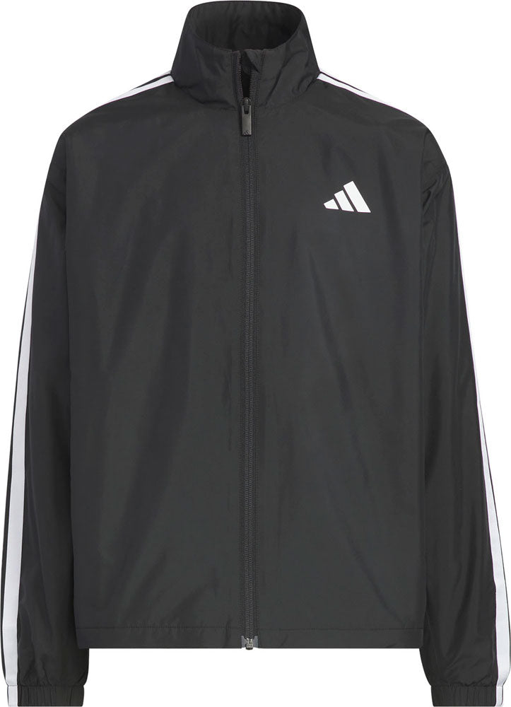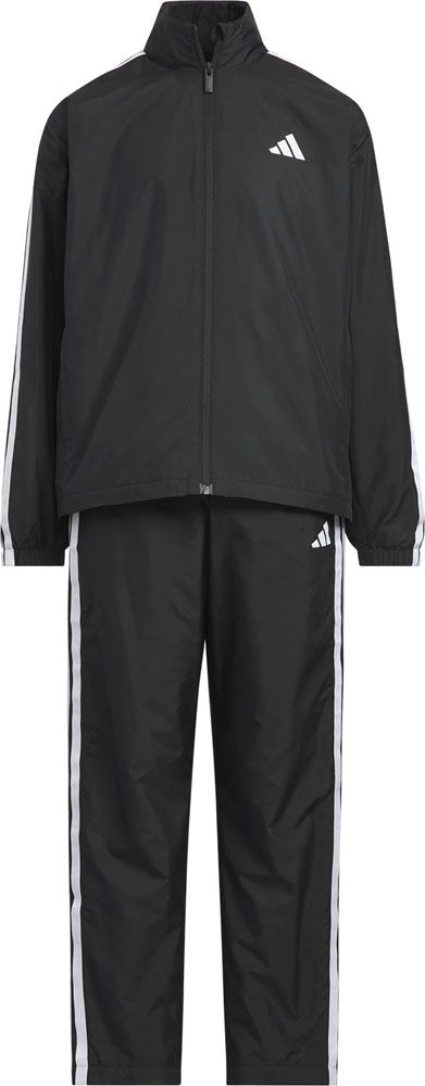 このアディダスのジュニア用トラックスーツは、探検に最適なパートナーだ。ジャケットとパンツは、滑らかな手触りのタフタ生地でできている。ルーズフィットで動きやすく、リブ仕上げのカフと裾がすっきりとした印象を与える。大胆なカラーブロッキングと脚のスポーティなスリーストライプスが見た目を完成させる。