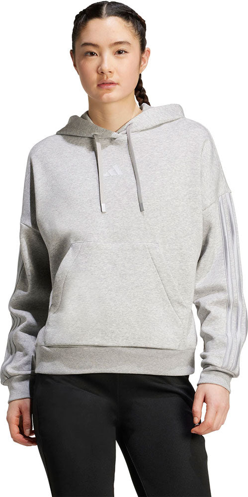 パーカー フリースパーカー スリーストライプス カジュアル スポーティー ソフト メタリック ルーズフィット ドローコード フード カンガルーポケット