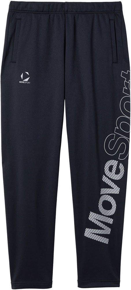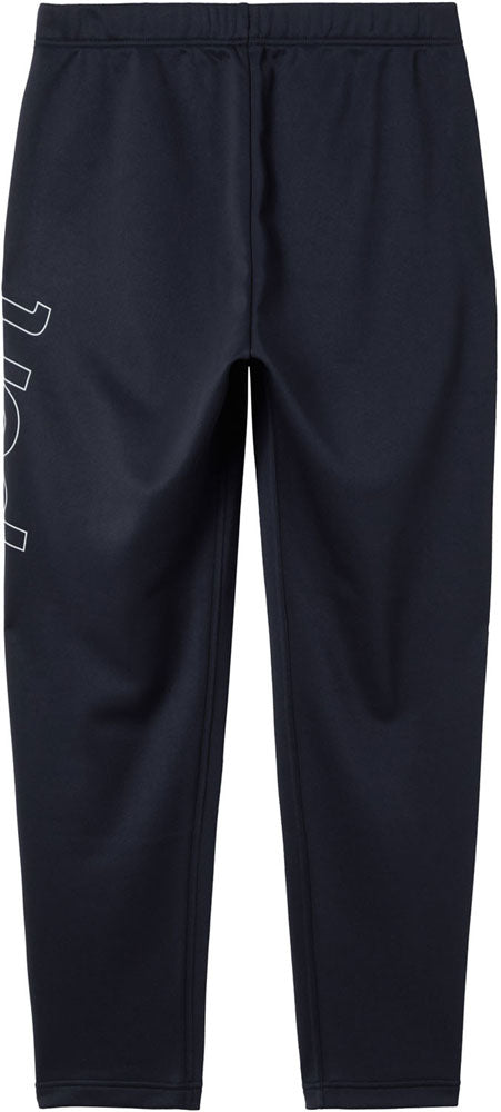 左足背面に大胆なビックロゴをあしらったロングパンツ。ストレッチ性に優れた裏起毛素材を採用。