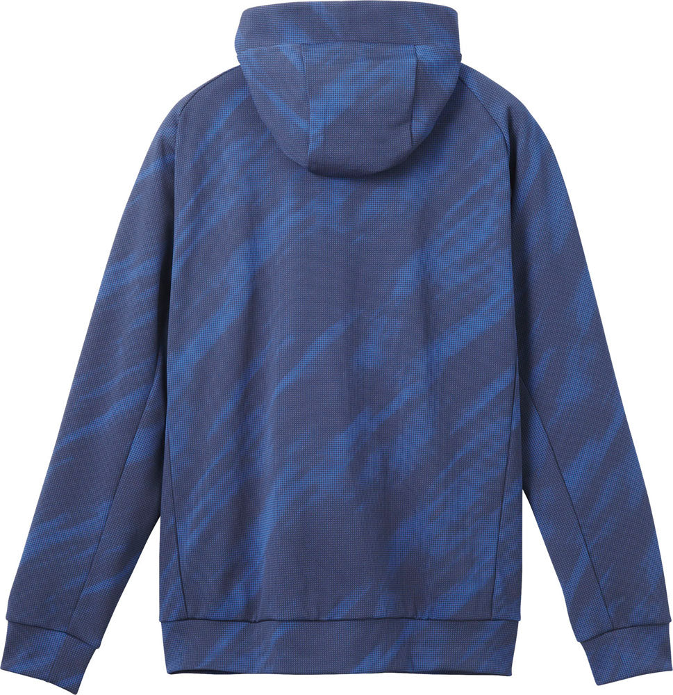 「風」と「躍動感」 をモチーフにした、総柄グラフィックが爽やかで春夏らしいフーディージャケット。吸汗性に優れたジャージ素材。2種類の高縮糸を効果的に編むことより、しなやかなストレッチ性を実現。生地の伸縮性や風合いを損なわない特殊柄プリント手法を採用し、着用時の快適性に優れます。