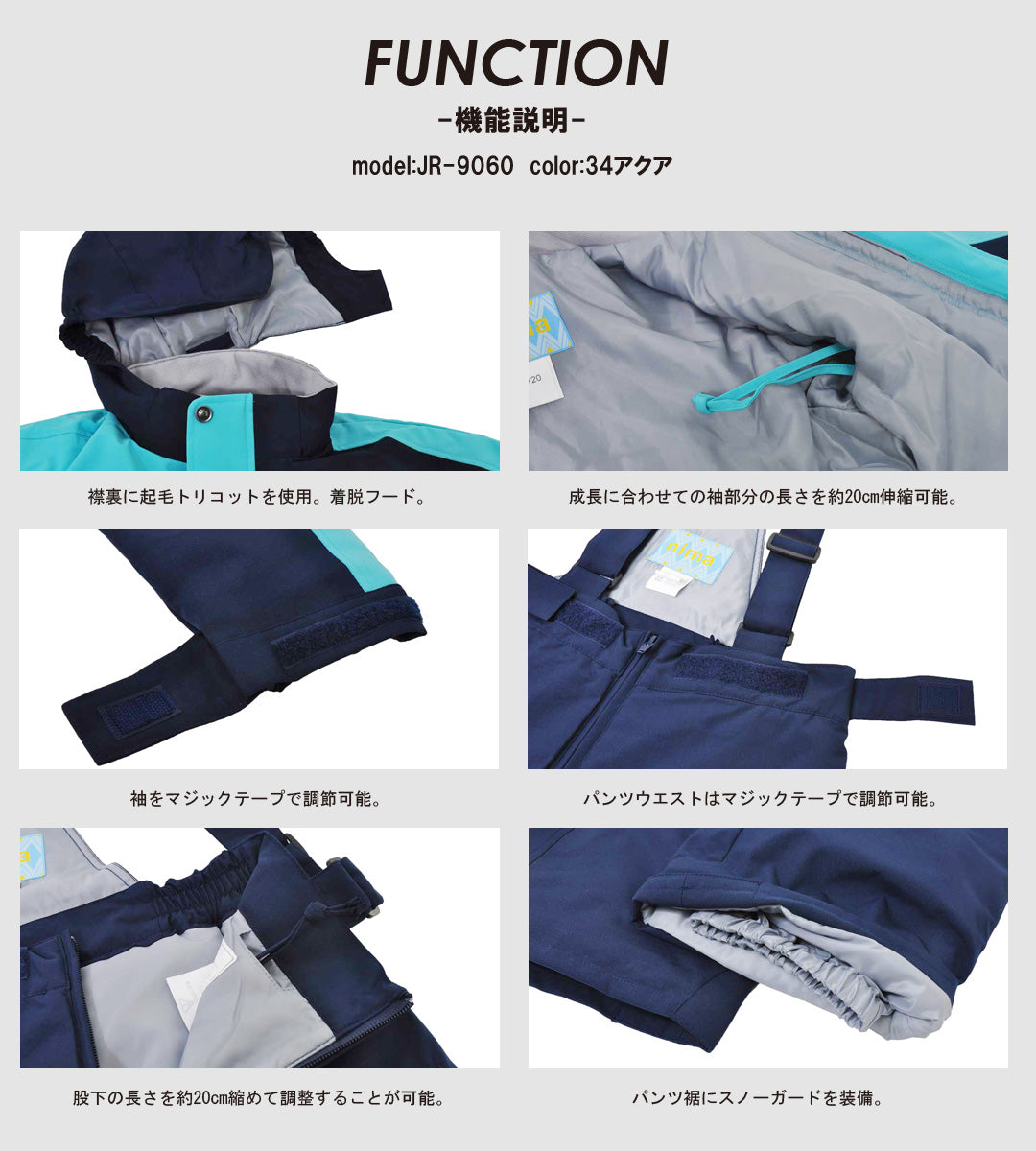 スキーウェア ジュニア 上下セット 女の子 サイズ調節