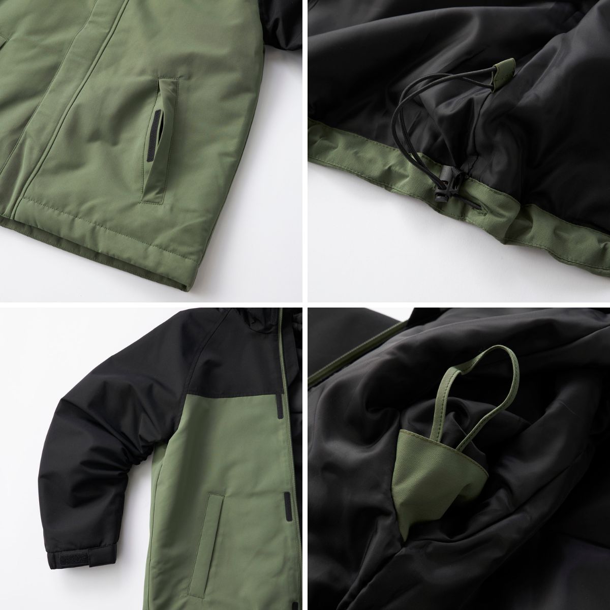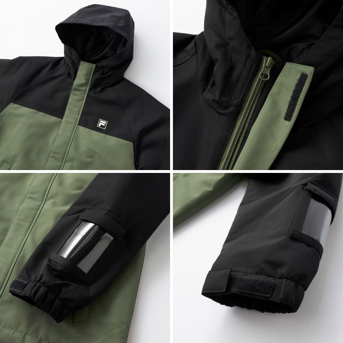 ・表地には耐水圧10,000mmのラミネート加工を採用し、雪や水から身体を守ります。
