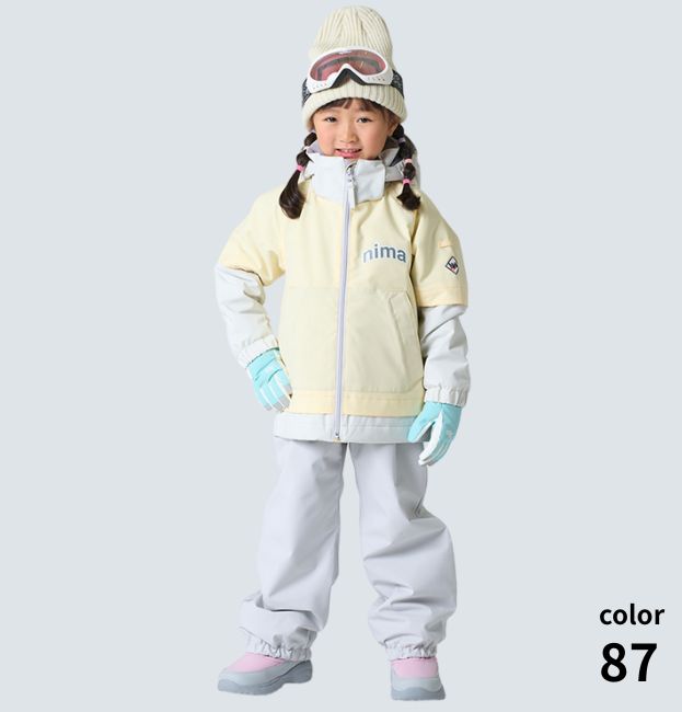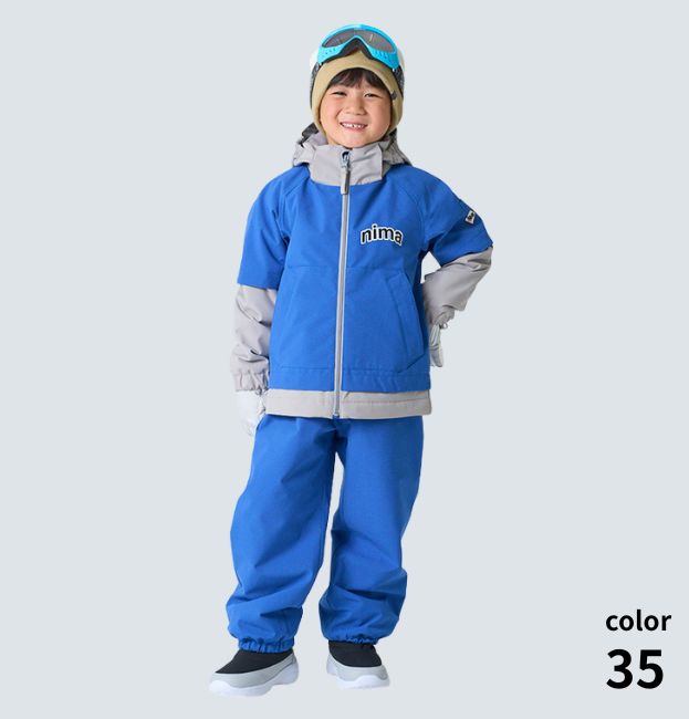 NIMAのキッズ用スノーボードウェア上下セットは、小さなお子様のために“あったかくて動きやすい”をしっかりカタチにしました。