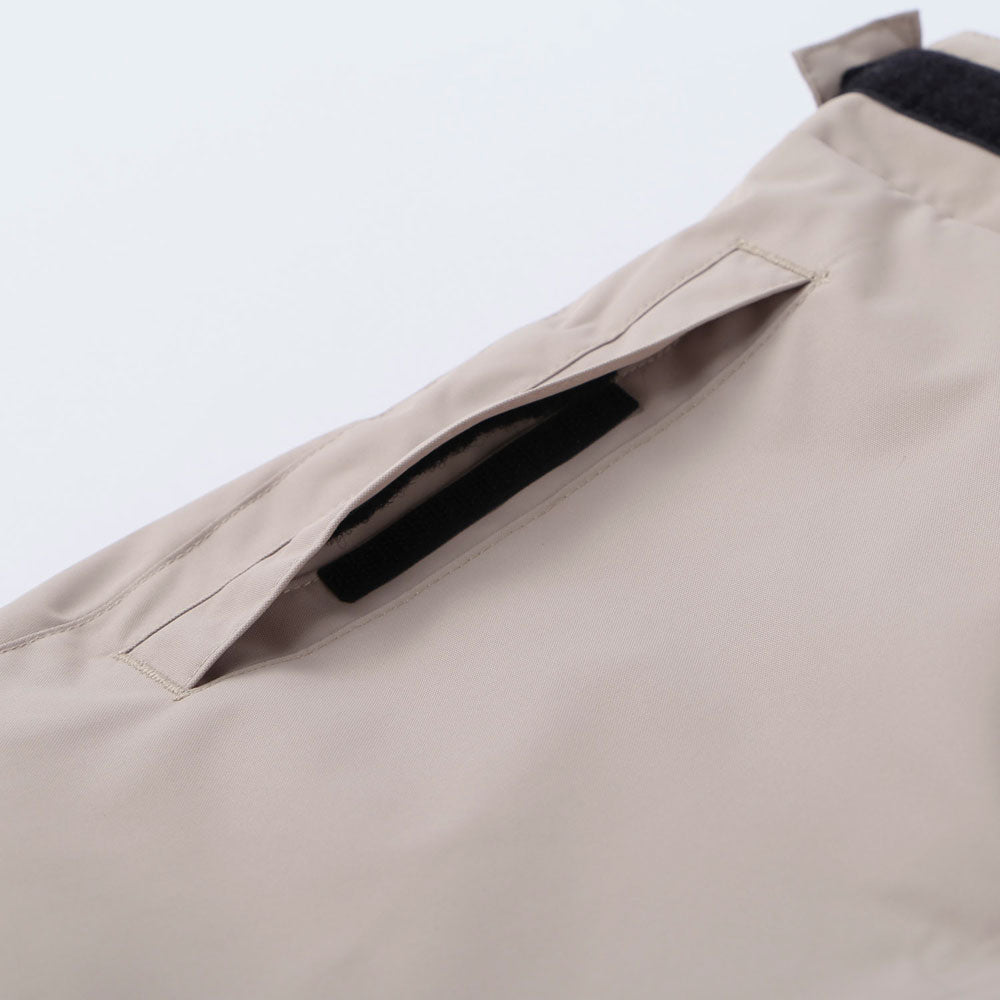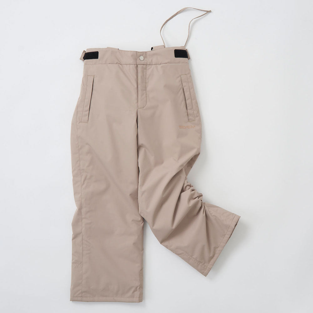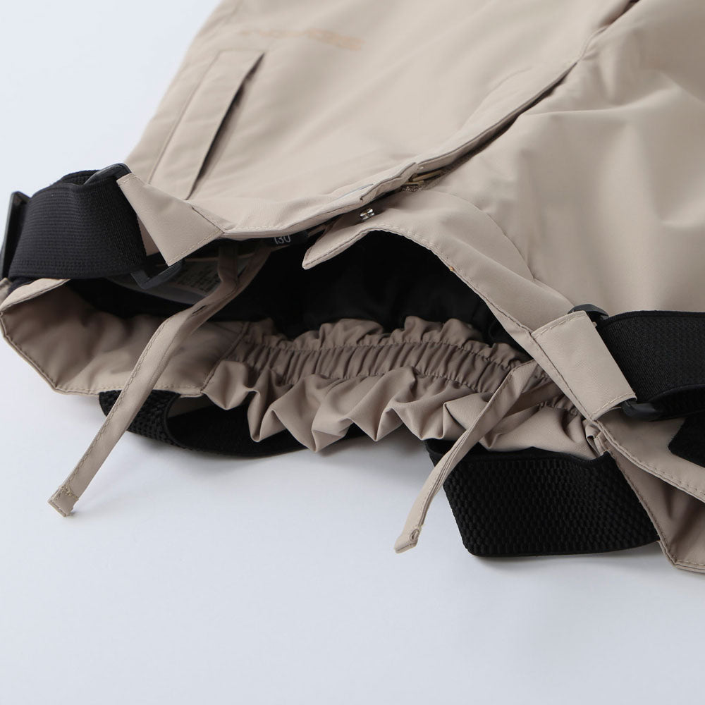 雪の侵入を防ぐブーツゲーターや袖や裾丈を調節できる仕様など、使いやすさを追求した機能性の高いパンツです。