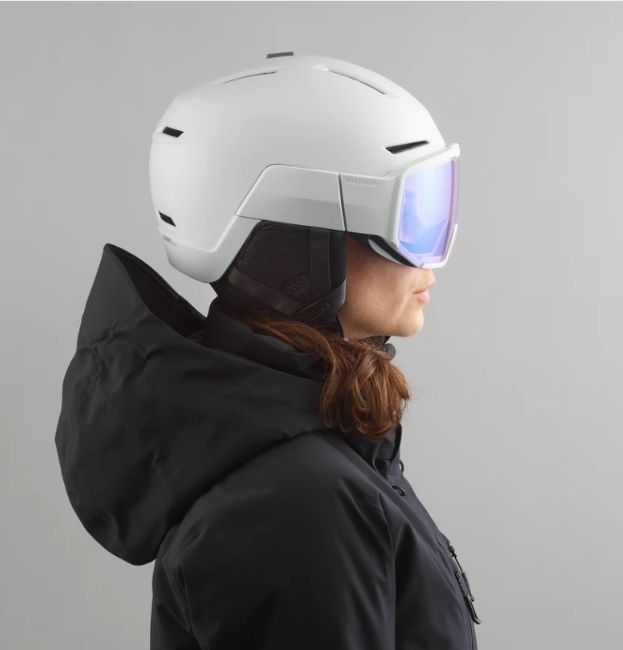 利便性、快適さ、スタイルを兼ね備えた Salomon の一体型 Osmo Pro SIGMA™ Photo バイザーヘルメット。一部にリサイクル素材を使用した このモデルは、光の変化に対応し、色のコントラストを高める全天候型 SIGMA™ Photo バイザーを装備。眼鏡をかけたままでも装着可能で、Custom Dial 360 V による微調整が、3D Fit の快適さを実現します。