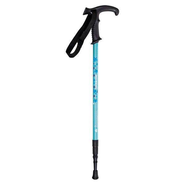 トレッキングステッキ Tグリップ(3段スライド式)〈ブルー〉フラワー