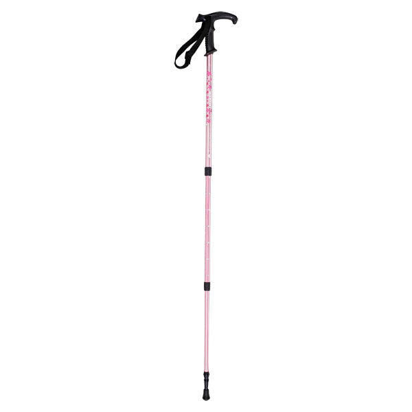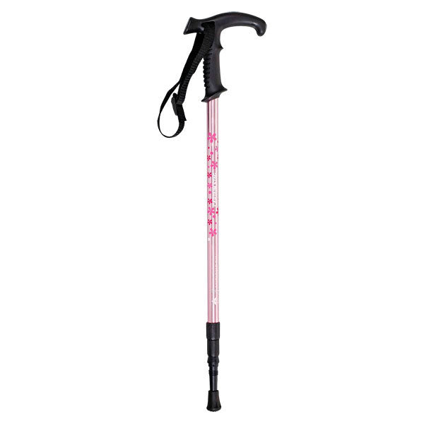 トレッキングステッキ Tグリップ(3段スライド式)〈ピンク〉フラワー