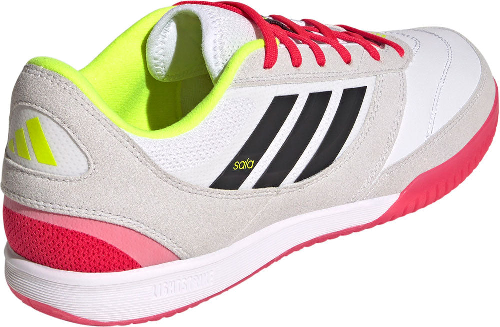 フットサル用に設計されたトップ サラ インドアシューズは、メッシュのクォーターとシュータンを備え、稲妻のようなスピードでピッチを駆け回るときもクールな履き心地を保つ。合成スエードのオーバーレイが、前足部の柔らかいレザーを衝撃や擦り傷から保護してくれるので、擦り切れたりすることを気にせずに自分の可能性を最大限に発揮できる。さらに、ソフトなEVAミッドソールとグリップの効いたラバーアウトソールを搭載した、コートを駆け回るプレーヤーを支える一足。この製品には、リサイクル素材を20%以上使用。製造された製品の素材をリユースすることで、ゴミの量、限りある資源への依存、そしてアディダス製品のフットプリントを減らすことにつながる。