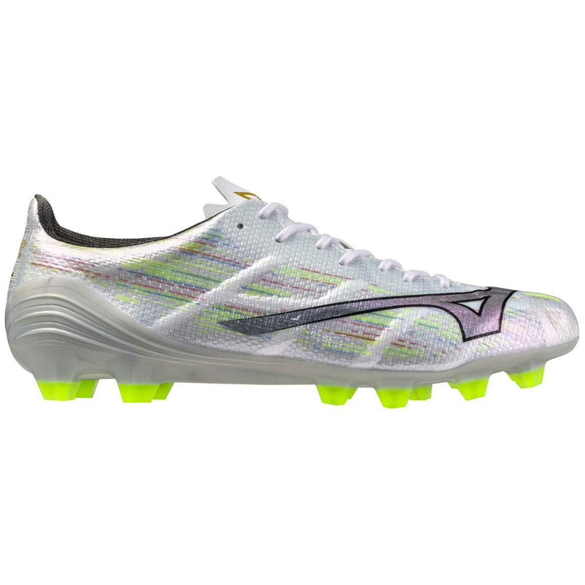 さらなるスピードを追求した6層構造の新アッパーは、柔らかなフィット感を実現。ZEROGLIDE α MESHの採用エリアを前足部まで拡大することで、足との一体化を追求。アウトソールはα Triangle Stud採用で、縦へのスピードにフォーカス。トップモデルに比べて、耐久性のあるアウトソールが魅力。シューズの命とも言えるラストには、Engineered Fit Last NEOを採用。