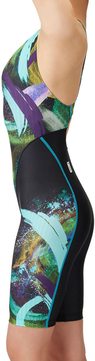レディース 競泳水着 レーシングワンピーススパッツ オープンバック ハーフレッグ