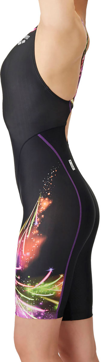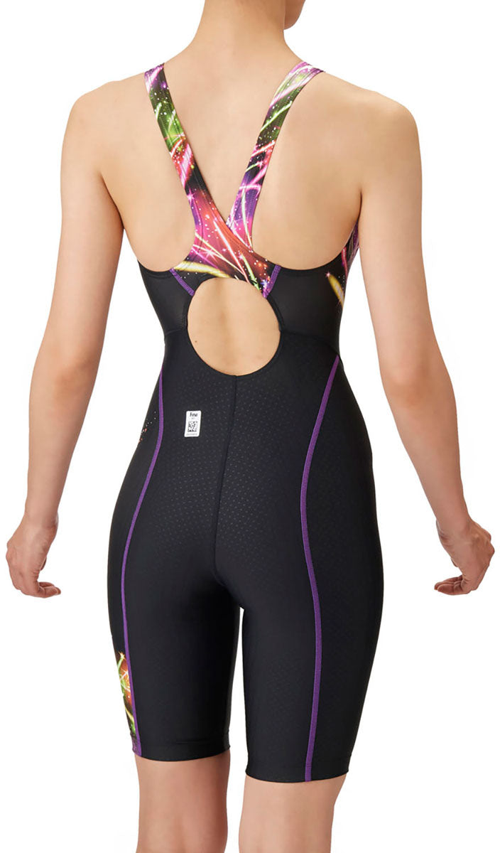 初級スイマーへ向けた「AQUA RACING」シリーズ。公式大会に出場するために必要なWORLD AQUATICS(世界水泳連盟)承認モデルの競泳水着。伸びのあるフィット感を実現したニット素材AQUASTRIPE-Dを採用。安心感のある地厚な生地で塩素に強く長持ちし、はっ水加工でシャープな水切れが特徴。初めてレースに出場するスイマーにオススメ。着脱が楽で肩紐がずれにくい着やストラップを搭載。カラフルな流れ星が流れているような華やかなデザイン。