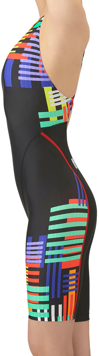 初級スイマーへ向けた「AQUA RACING」シリーズ。公式大会に出場するために必要なWORLD AQUATICS(世界水泳連盟)承認モデルの競泳水着。伸びのあるフィット感を実現したニット素材AQUASTRIPE-Dを採用。安心感のある地厚な生地で塩素に強く長持ちし、はっ水加工でシャープな水切れが特徴。初めてレースに出場するスイマーにオススメ。着脱が楽で肩紐がずれにくい着やストラップを搭載。25FWシーズンのデザインテーマの1つである「FUSION COLORS」のデザイン。カラフルなストライプをレーシングらしくスポーティーなイメージで配置。