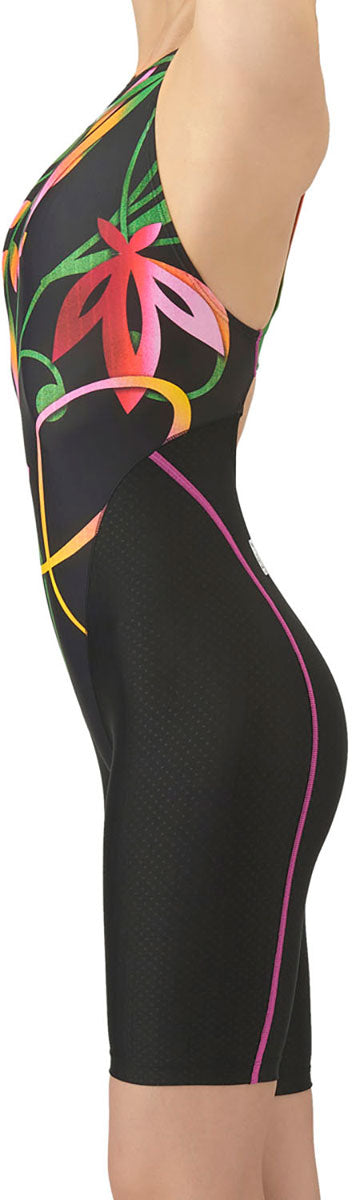 レディース 競泳水着 レーシングワンピーススパッツ オープンバック・ハーフレッグ