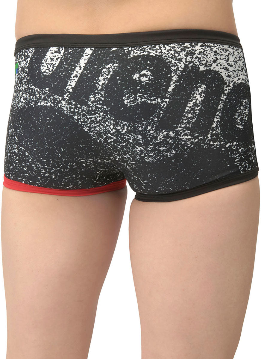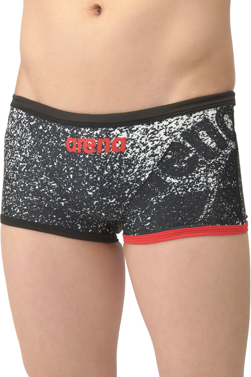 アリーナパネルロゴデザインのショートレッグタイプ水着。