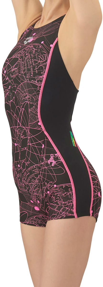 レディース競泳トレーニング水着 ワンピーススパッツ オープンバック ミドルレッグ 練習用