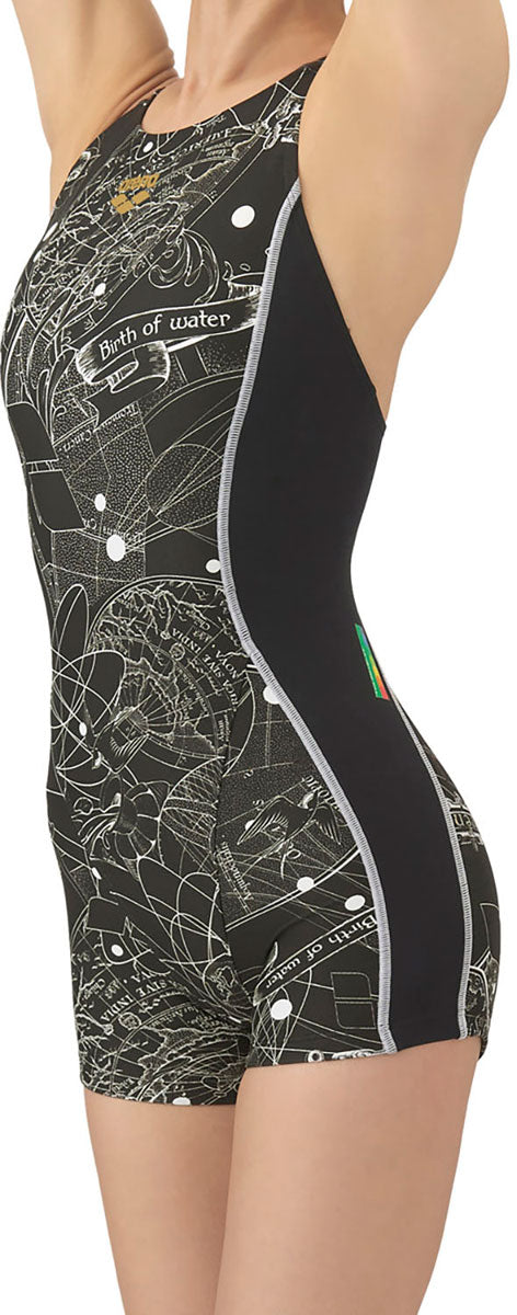 トレーニングカテゴリー「TOUGHSUITシリーズ」。大会に向けて練習を重ねる頻度が高いスイマーにオススメの練習用水着。環境に配慮したリサイクルポリエステル素材「タフスキンEP」を使用し塩素に強く長持ち。シーズンテーマのBirTh of WaTerの脇切替ミドルレッグタイプ。肩紐は安心感のある着やストラップを採用。宇宙誕生から現在までの長い進化の過程の中で奇跡的に誕生した地球の壮大で神秘的なグラフィックを4配色で表現。シンプルなデザインの中に洗練された美しさを感じさせるデザイン。前身頃、後身頃に黒の裏地付き(脇は裏なし)。※この商品は縫製上、一点一点プリント柄の見え方に違いが生じますので予めご了承ください。
