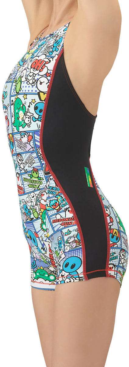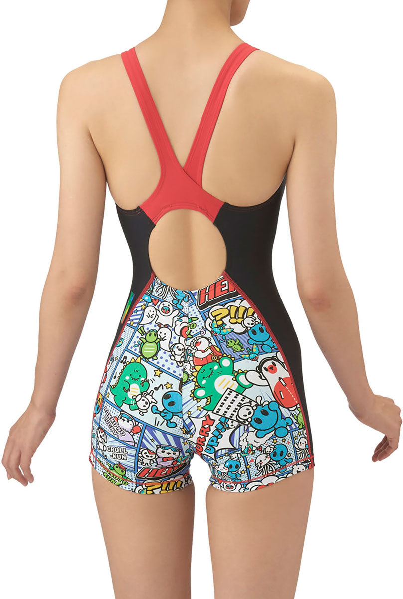 トレーニングカテゴリー「TOUGHSUITシリーズ」。大会に向けて練習を重ねる頻度が高いスイマーにオススメの練習用水着。環境に配慮したリサイクルポリエステル素材「タフスキンE、EP及びT2E」を使用し塩素に強く長持ち。全てのスイマーに人気のアリーナくんの総柄ミドルレッグタイプ。AS5FWM00Lで展開するテーマ(宇宙や地球)と連動する冒険物語。アメリカンコミック調の柄は鮮やかな色合いとダイナミックな線が特徴でインパクトのあるデザイン。アリーナくんたちと地球外生命体(怪獣、宇宙人、お化け)が出会い、友達になる過程をプリントに表現。地球を守る戦隊ヒーロー風のスタイルを取り入れることで、アリーナくんたちのチームとしての一体感を演出。カラフルな4配色の展開。前身頃、後身頃に黒の裏地付き(脇は裏なし)※この商品は縫製上、一点一点プリント柄の見え方に違いが生じますので予めご了承ください。