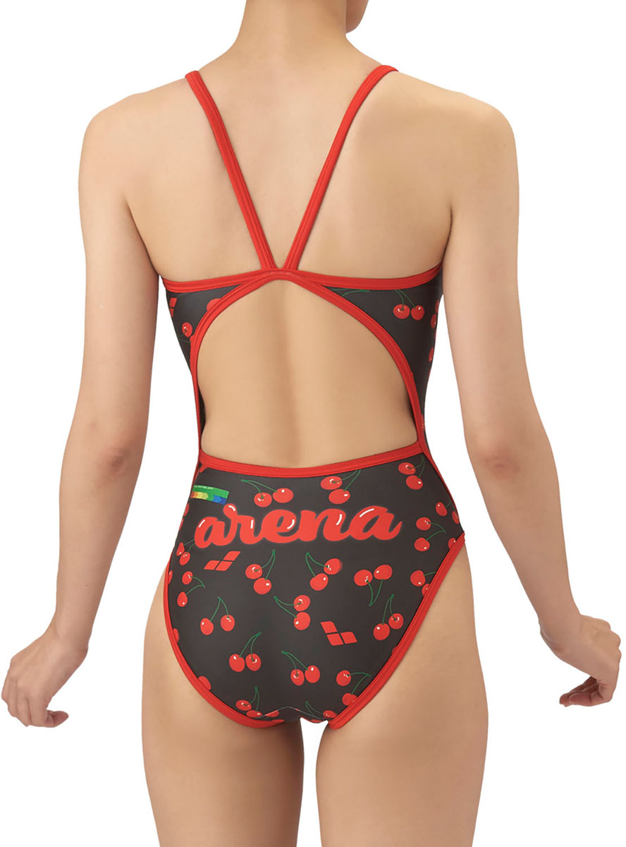 トレーニングカテゴリー「TOUGHSUITシリーズ」。大会に向けて練習を重ねる頻度が高いスイマーにオススメの練習用水着。環境に配慮したリサイクルポリエステル素材「タフスキンT2E」を使用し塩素に強く長持ち。アリーナロゴが脇に配置されたデザインの練習水着。スタイリッシュでカッコいいデザインから可愛くトレンド感があるデザインまで、幅広くバリエーションに富んだスタイルを一つの品番で表現。BKPK:地球や宇宙の光と自然の色彩の美しさから着想を得たデザイン。BKRD:チェリーのモチーフを使ったフルーティーで明るい印象を与えるデザイン。PKBL:レトロな花柄をトレンド感のある配色やロゴと組み合わせたデザインで表現。PPBK:輝く光と可愛いロゴがトレンド感と明るい印象を与えるデザイン。前身頃、後身頃に黒の裏地付き。ワンピースタイプ。