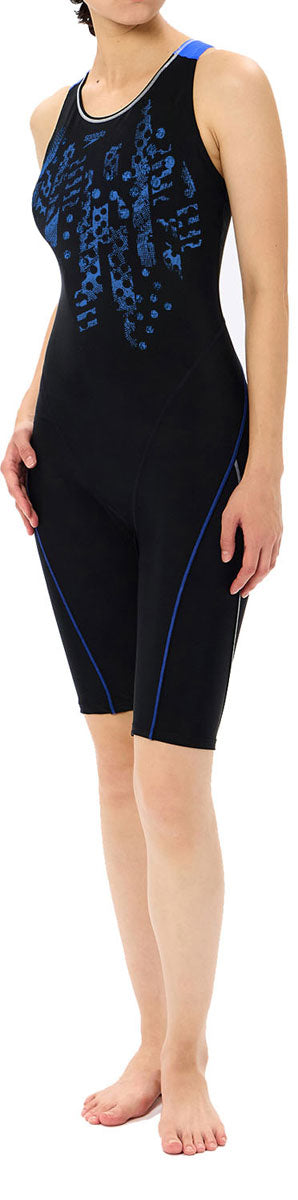 ゆったりしたフィット感で自分のペースで泳ぎたい方向けの「Loosen(ルースン)」シリーズ。縦横に自由に伸びて着脱もスムーズ。トレーニング中も心地よくフィットしてズレにくい、環境配慮型素材「Ultra Stretch 0(ウルトラ・ストレッチ・ゼロ)」採用のレディースニースキンです。露出を抑えた小さな背穴。肩ストラップは食い込みを防ぐために幅広仕様です。着脱時のもたつきが少なくズレにくく動きやすい、縫い込み式のカップ付き。クロッチ部分には肌あたりのよい柔らかな素材を使用しています。膝上までの4分丈です。ゆったりとしたフィット感で、着脱時もトレーニング時も快適性が持続します。股下のハギをなくし、スムーズな脚の動きを実現しました。安心感のある厚みがボディラインをほどよくカバーします。はっ水機能付き(非フッ素はっ水)。大小サイズの異なるドットを散りばめた美しいグラフィック柄。水映えする華やかなデザインです。