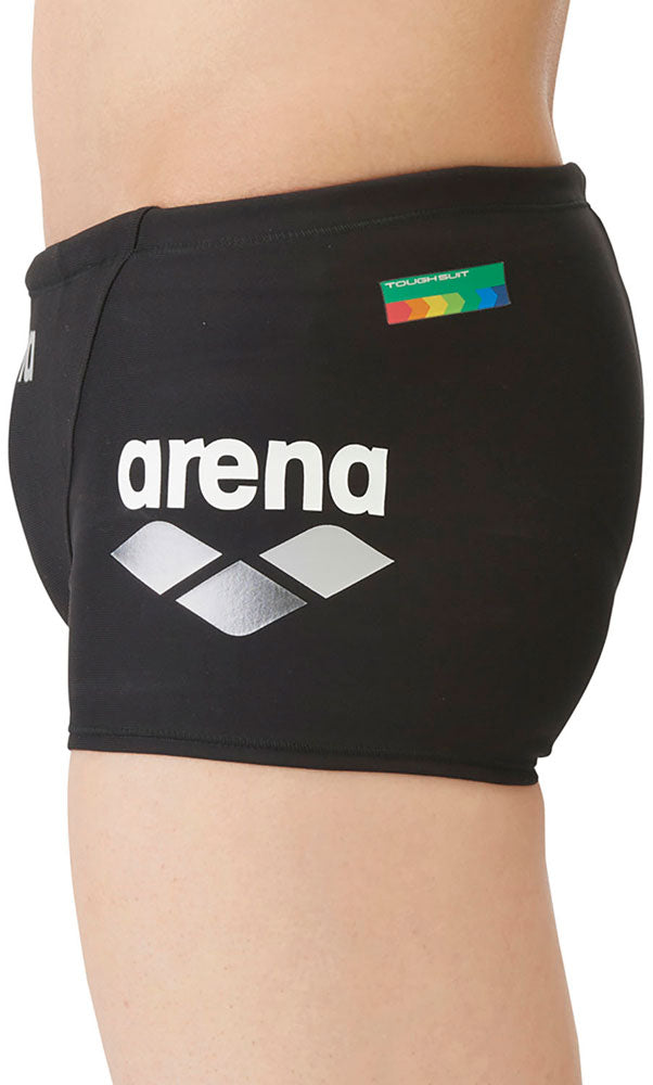 環境に配慮したリサイクルポリエステル素材「タフスキンE」を採用したTOUGHSUITシリーズ。塩素に強く長持ちするので、練習頻度が高く、過酷なトレーニングを行うスイマーにオススメの水着です。ラバープリントでビッグロゴを大胆に2配色使用したアリーナらしいデザインです。