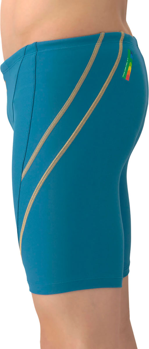 トレーニングカテゴリー「TOUGHSUITシリーズ」ジュニア用サイズ。大会に向けて練習を重ねる頻度が高いスイマーにオススメの練習用水着。環境に配慮したリサイクルポリエステル素材「タフスキンE」を使用し塩素に強く長持ち。脇ステッチをシンプルに入れたデザイン。前当て部分に黒の裏地付き。ハーフレッグタイプ。