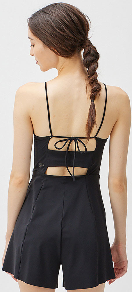 スタイルと着心地の良さを兼ね備えた「Stay FIT(ステイ・フィット)」コレクション。GRS認証のすてられるべき廃棄物を100%使用したナイロン糸「RECO(R)NYLON(レコ・ナイロン)」を使用したリサイクル素材「Sensitive(R)Reco(センシティブ レコ)」採用のレディースオールインワン。フロントはシンプルで洗練された雰囲気。背面は華奢な肩ひもでバックコンシャスなデザイン。裾に向かってAラインにやや広がるシルエットは、ヒップラインを程よくカバーし、美脚効果も期待できます。差し込みタイプのカップ付き。水着としての着用はもちろん、リゾート地でのリラックスウエアとしてもお使いいただけます。