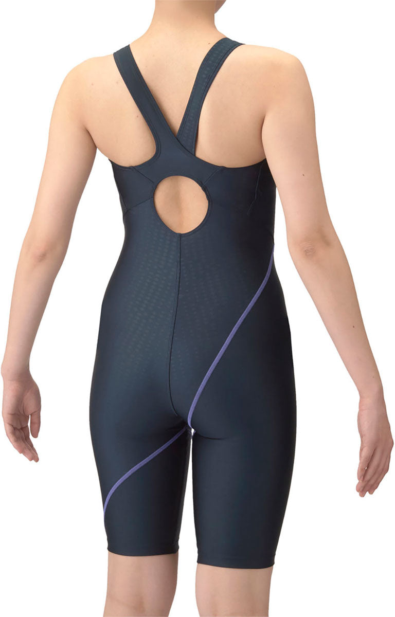 【AQUA EXA - アクアエクサ】「泳ぎやすさ」を追求したフィットネス水着、AQUA EXA(アクアエクサ)シリーズ。上達を目指すフィットネススイマーにおすすめ。あきの少ないオープンバックタイプで、背中の露出を抑えつつ、水が抜けるため泳ぎやすい。膝上まで生地があるハーフレッグ丈で、脚の露出を抑えるため、安心感を求める方におすすめ。大きく開いて着脱がしやすい「着やストラップ」搭載。はっ水生地を使用しており、シャープな水きれで軽い泳ぎ心地が特徴。パッドは「ぴったりパッド」を使用しており、水着に縫い込まれているため、水の中でもズレにくくフィット感を重視する方におすすめ。エンボス加工を施した生地を使用しており、さりげない地模様がボディーラインをカバー。左胸のアリーナロゴと斜めに入った切替ラインがスタイリッシュさを演出。※効果や使用感には個人差があります。