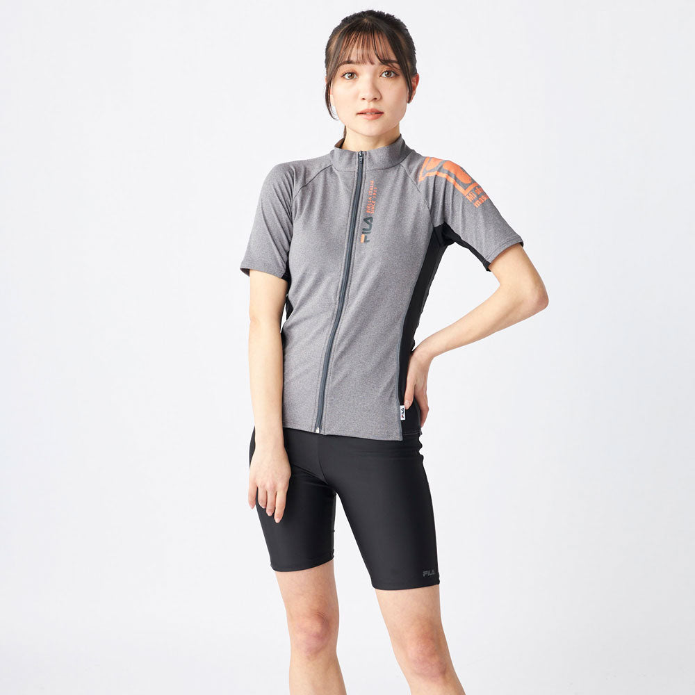 スイムウェア 水着 上下セット フィットネス 半袖 ジップ レディース トレーニング