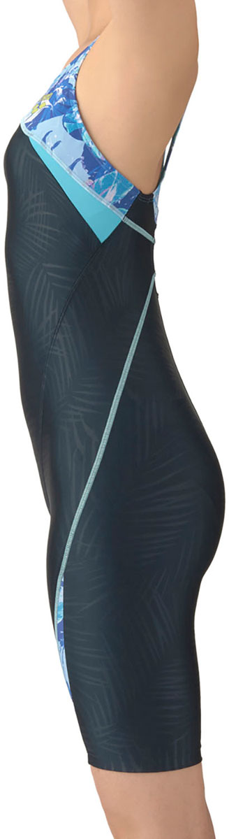 【AQUA EXA-アクアエクサ】「泳ぎやすさ」を追求したフィットネス水着、AQUA EXA(アクアエクサ)シリーズ。上達を目指すフィットネススイマーにおすすめ。あきの少ないオープンバックタイプで、背中の露出を抑えつつ、水が抜けるため泳ぎやすい。膝上まで生地があるハーフレッグ丈で、脚の露出を抑えるため、安心感を求める方におすすめ。大きく開いて着脱がしやすい「着やストラップ」搭載。はっ水生地を使用しており、シャープな水きれで軽い泳ぎ心地が特徴。パッドは「ぴったりパッド」を使用しており、水着に縫い込まれているため、水の中でもズレにくくフィット感を重視する方におすすめ。エンボス生地を使用し、さりげないリーフ柄の地模様がボディーラインをカバー。胸元に入った植物柄のプリントデザインがプールの中での顔映りをよく見せてくれるようなデザイン。※効果や使用感には個人差があります。また、肩紐部分、切り替え部分ははっ水が施されていない場合があります。