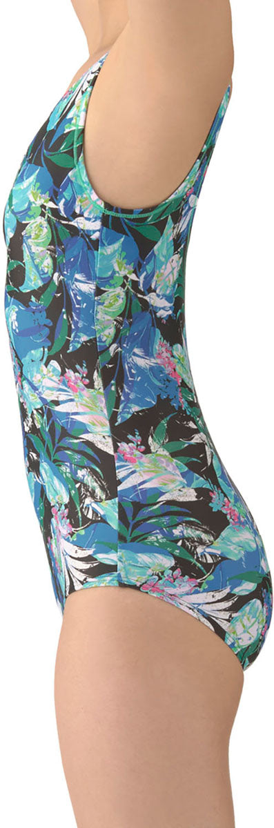 アクアビクスや水中ウォーキングなど、健康やリフレッシュのためにプールでのエクササイズを楽しむフィットネススイマーにおすすめのフィットネス水着。脚さばきのいいワンピースタイプで、U字型のバックスタイルは着脱が簡単。パッドは、「差し込みパッド」を使用しており取り外しが可能。また、パッドポケット内に収まるため、脱ぎ着がしやすく、水の中でもしっかりフィットし、安心感のある仕様。葉っぱや花などの植物をモチーフとしたプリントデザイン。プールでの顔映りをよく見せてくれるような色鮮やかなカラーリングで表現されており、首回りのさりげないカラーステッチがデザインアクセント。※この製品は縫製上、一点一点プリントの柄の見え方に違いが生じますので予めご了承ください。
