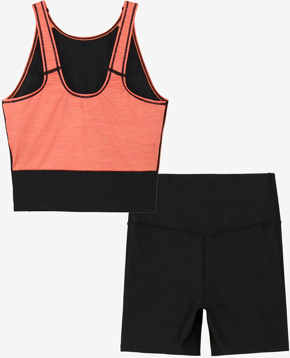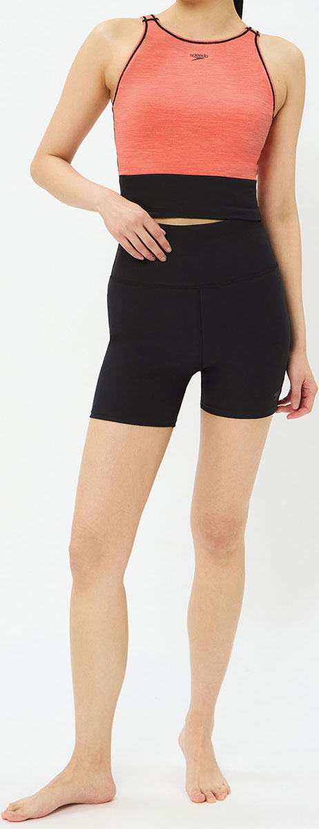 プールでのアクティビティをフレッシュに、より楽しくサポートするフィットネススイムウエアカテゴリー「Pool Athletics(プール・アスレティクス)」。プールでのエクササイズ以外にも、レジャーやホットヨガなど、さまざまなシーンでマルチに活躍するレディースセパレーツです。トップスはソフトなストレッチ性が特徴の環境配慮型素材「Heather Stretch ECO(ヘザー・ストレッチ・エコ)」を採用。露出の少ない胸元は、水が入りにくく、どんな動きでも胸元を気にしなくてよいので、アクティビティに集中できます。着脱しやすいUバック。差し込みタイプのカップ付き。飽きのこない上品なミックスカラー。ボトムスは高い耐塩素性・4WAYストレッチ性に加え、身体のラインをひろわず、水中での透けも気にならない環境配慮型素材「ENDURANCE ECO(エンデュランス・エコ)」を採用。ホールド感のあるハイウエスト設計で、さまざまな動きに対応。トップスをインしてもバランスがよく、脚長効果やスタイルアップ効果も期待できます。また、水中で水着がめくれ上がるのを軽減します。お尻が上向きに見えるVバックライン。足さばきのよい2.5分丈。UVプロテクト(UPF50+、紫外線カット率95%以上)機能付き。ミニマムなデザインなので使い方も自由自在。コストパフォーマンスの高い一枚は、水着のファーストチョイスにおすすめです。