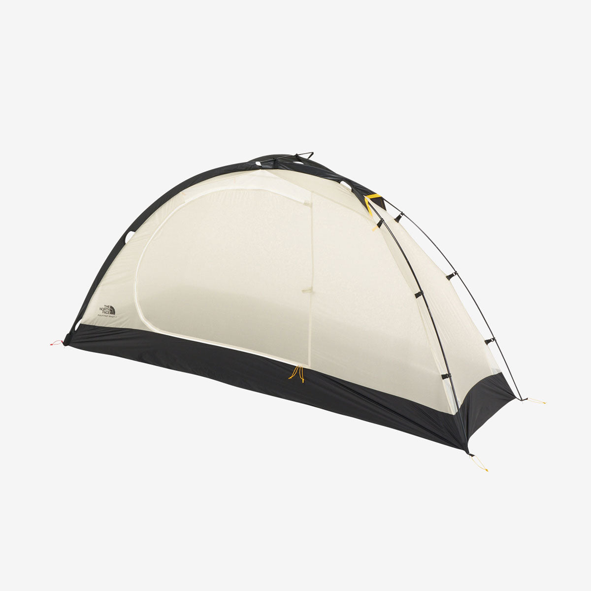 片側をリッジポールまでのスリーブ式、もう片側を吊り下げ式にしたハーフスリーブ構造で直感的に設営ができ、高い耐風性と快適な室内空間を実現。フライシートだけでも設営可能な構造です。効果的な換気を促すハイ・ローベンチレーションを装備。インナーテントのボトムは防水性の高いバスタブ構造で、雨の跳ね返りによる濡れを軽減します。