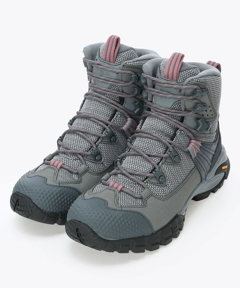 アウトソールには、高機能コンパウンドであるヴィブラム「エックスエストレック」が高所登山などの過酷な環境下でも高いグリップ性とトラクションを発揮します。また、柔軟性もあるので、不整地なトレイルでも安定した歩行性能をサポートします。