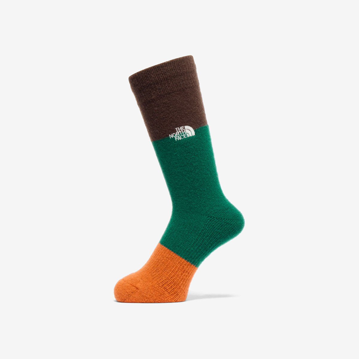 保温性と調湿性をもつウールの快適性と、摩耗強度の高いナイロンをハイブリッドした素材を採用。足裏からアキレス腱部までを保護するハーフパイル仕様で、クッション性と通気性を両立します。土踏まずのアーチサポート構造と長めのリブ設計で着圧をやわらげ、長距離歩行での負担を軽減。パイル部とリブ部でカラーを切り替えたブロックデザインで、コーディネートも楽しめます。