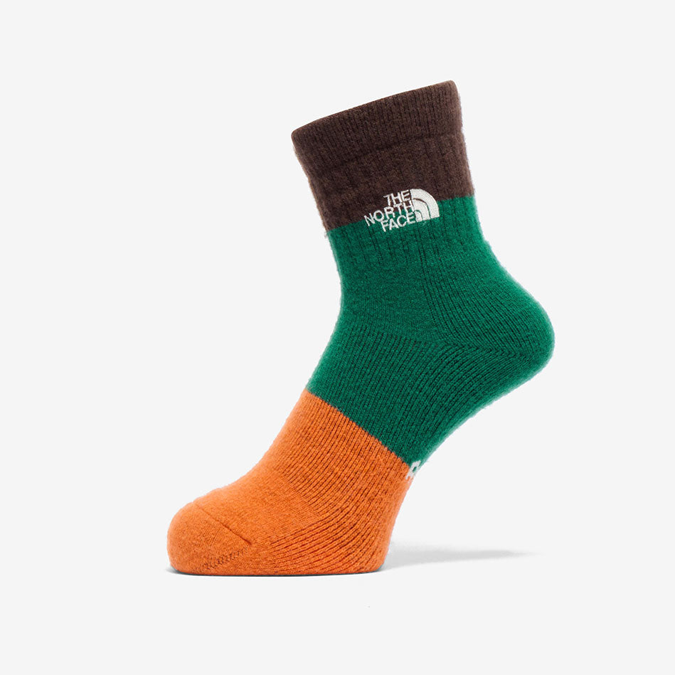 保温性と調湿性をもつウールの快適性と、摩耗強度の高いナイロンをハイブリッドした素材を採用。足裏からアキレス腱部までを保護するハーフパイル仕様で、クッション性と通気性を両立します。土踏まずのアーチサポート構造と高いフィット感のリブ設計で、長距離歩行での負担を軽減。くるぶし部で切り替えたブロックデザインで、コーディネートも楽しめます。