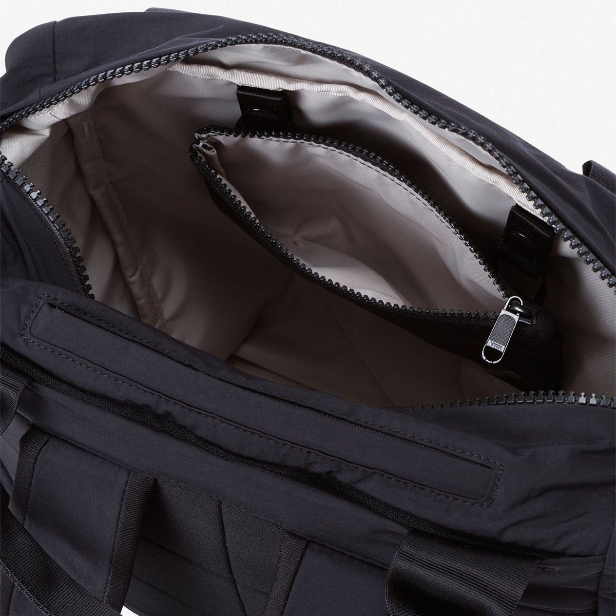 パックとトートの使い方が選べる2WAY仕様のユーティリティパックです。素材は、柔らかいタッチ感をもつ160デニールのリサイクルナイロン。シンプルでクリーンな印象に仕上げ、女性ユーザーの使いやすさを追求しています。メインコンパートメントは、15インチまでのノート型PCが収納できるスリーブを設置。ジッパーポケットは、小型モバイルやサングラスの収納に役立つフリースライニングを装備。さらに、取り外し可能なモデュラーポーチを付属しています。ボトム部には、コーティング補強で耐久性を向上させ、シューズ収納用の専用コンパートメントを配備。日常のさまざまなシーンで使いやすいアイテムです。
